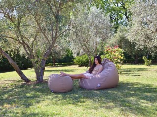 Pouf da esterno in tessuto tecnico Olefine 220g/mq nei colori Sabbia - Grigio - Light BLue - Tortora - Bianco . Imbottitura morbida in microsfere.