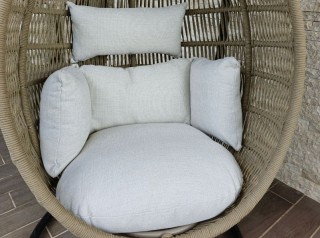 Dotata di cuscino imbottito per la seduta e cuscino poggiatesta, garantisce il massimo comfort in ogni momento. Il solido sostegno in metallo verniciato a polvere assicura stabilità e durabilità, rendendola perfetta per giardini, terrazze e aree lounge esclusive. Un ottimo complemento d'arredo outdoor adatto a giardini privati o strutture ricettive che amano sorprendere i propri ospiti con originalità.